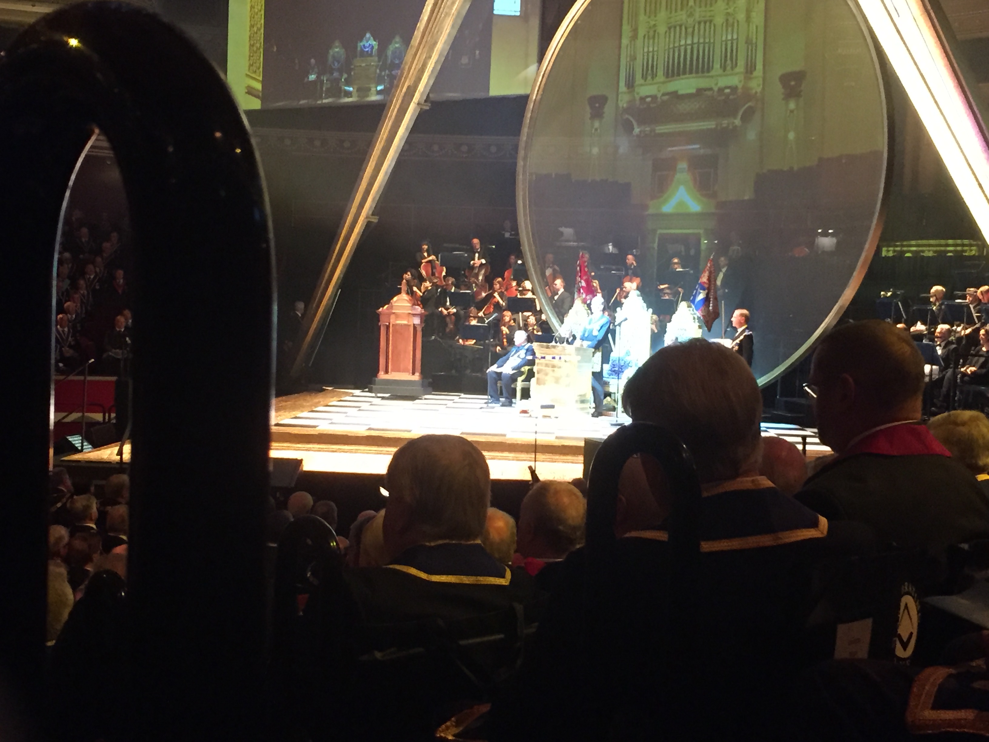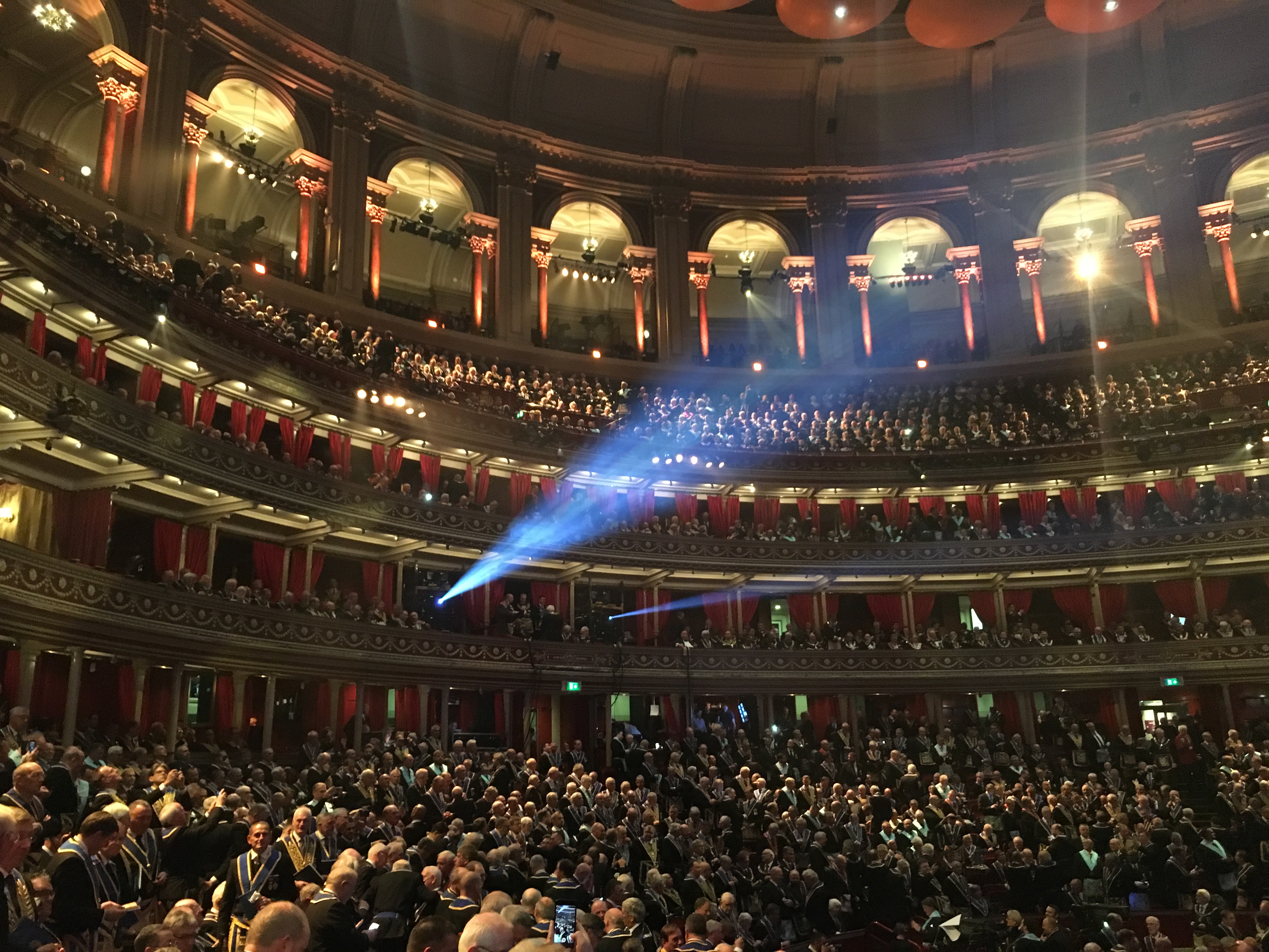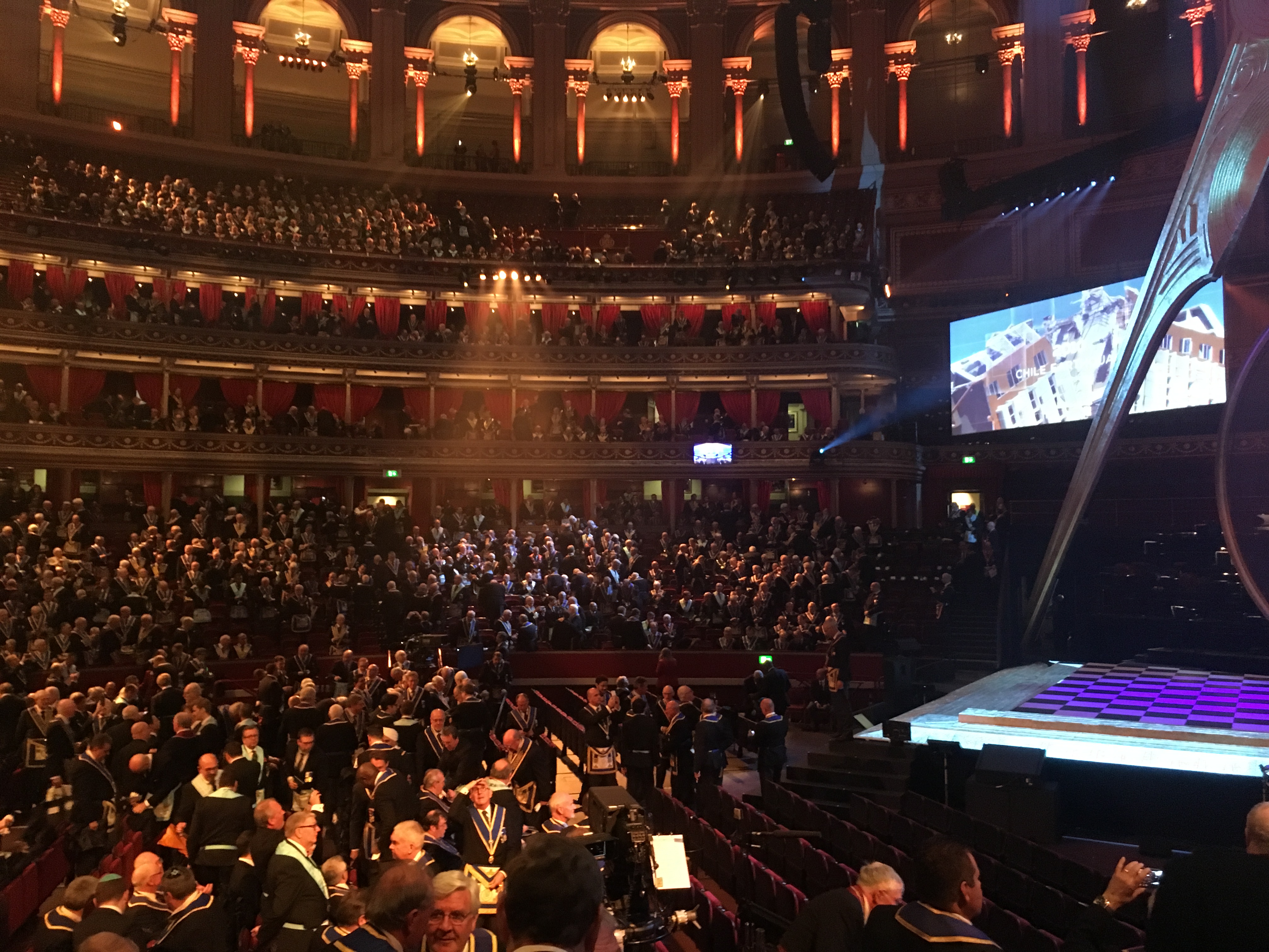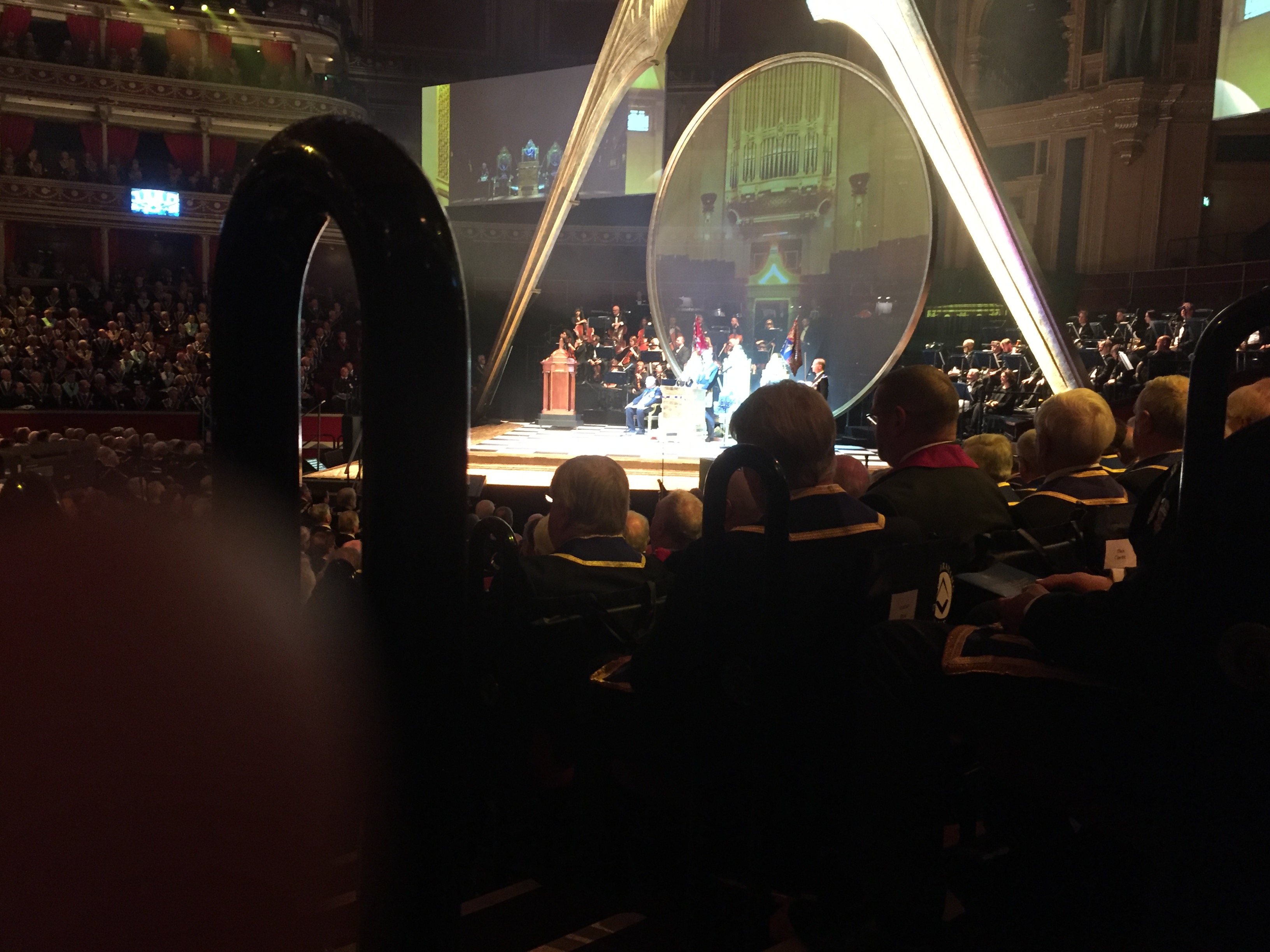We were then asked to put our regalia on and make our way into the Royal Albert Hall and were greeted with the view of 4000+ Masons and a stage which had clearly taken a lot of preparation and hard work.